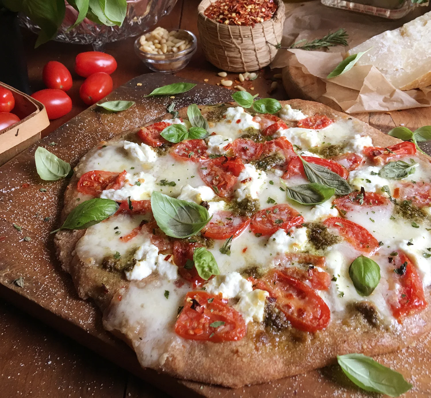 - Add fresh herbs after the pizza comes out of the oven.