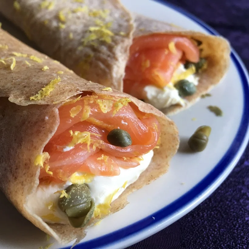 Smoked Salmon and Cream Cheese Filled Crepes With Lemon & Capers